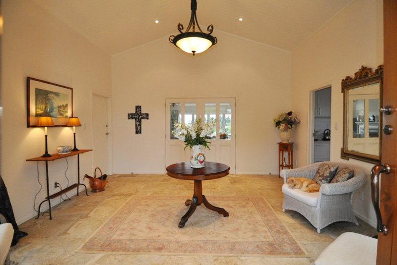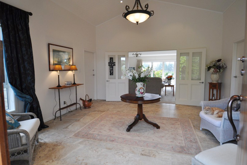 This 1980's hinuera stone clad home had four separate additions to the existing footprint, including a large entrance portico / hall, with the interior being remodelled to bring it up to the owners changing living requirements. All the changes are impressive and the new entrance portico spectacular.